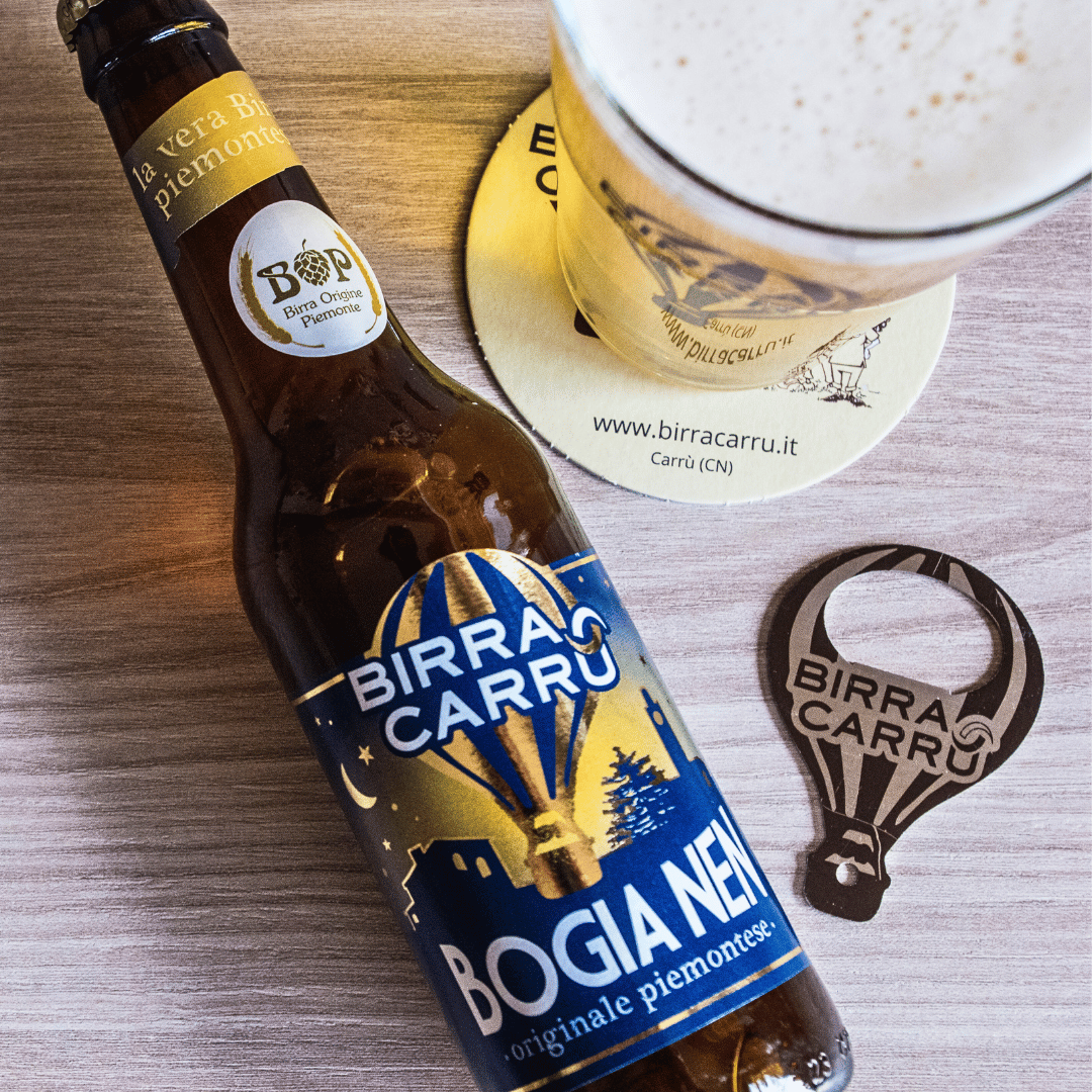 Volaaareee, Oh Oh! Stappare Oh Oh Oh! Con l’apribottiglie in metallo Birra Carrù non potrai fare a meno di cantarla… e stapparla, certo. L’abbiamo pensato a forma di mongolfiera, per accompagnarti in tutti i tuoi viaggi tra gli stili di birra. Insieme al set di bicchieri per la degustazione, è un gadget che non può mancare ai veri appassionati come te 😉